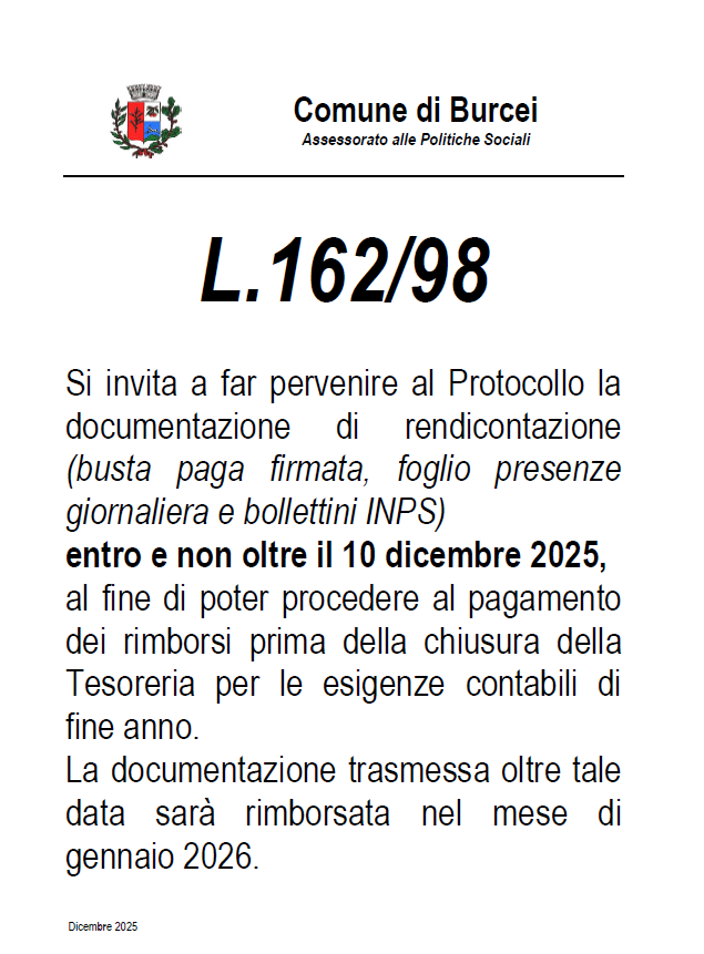 Si avvisa la cittadinanza che per l’intera giornata del 3 ottobre 2025, è indetto lo sciopero generale nazionale di tutte le categorie pubbliche e private. Saranno possibili disagi nella prestazione dei servizi. Saranno garantiti i servizi essenziali (reperibilità polizia mortuaria-denuncia decessi al numero 3401553605)