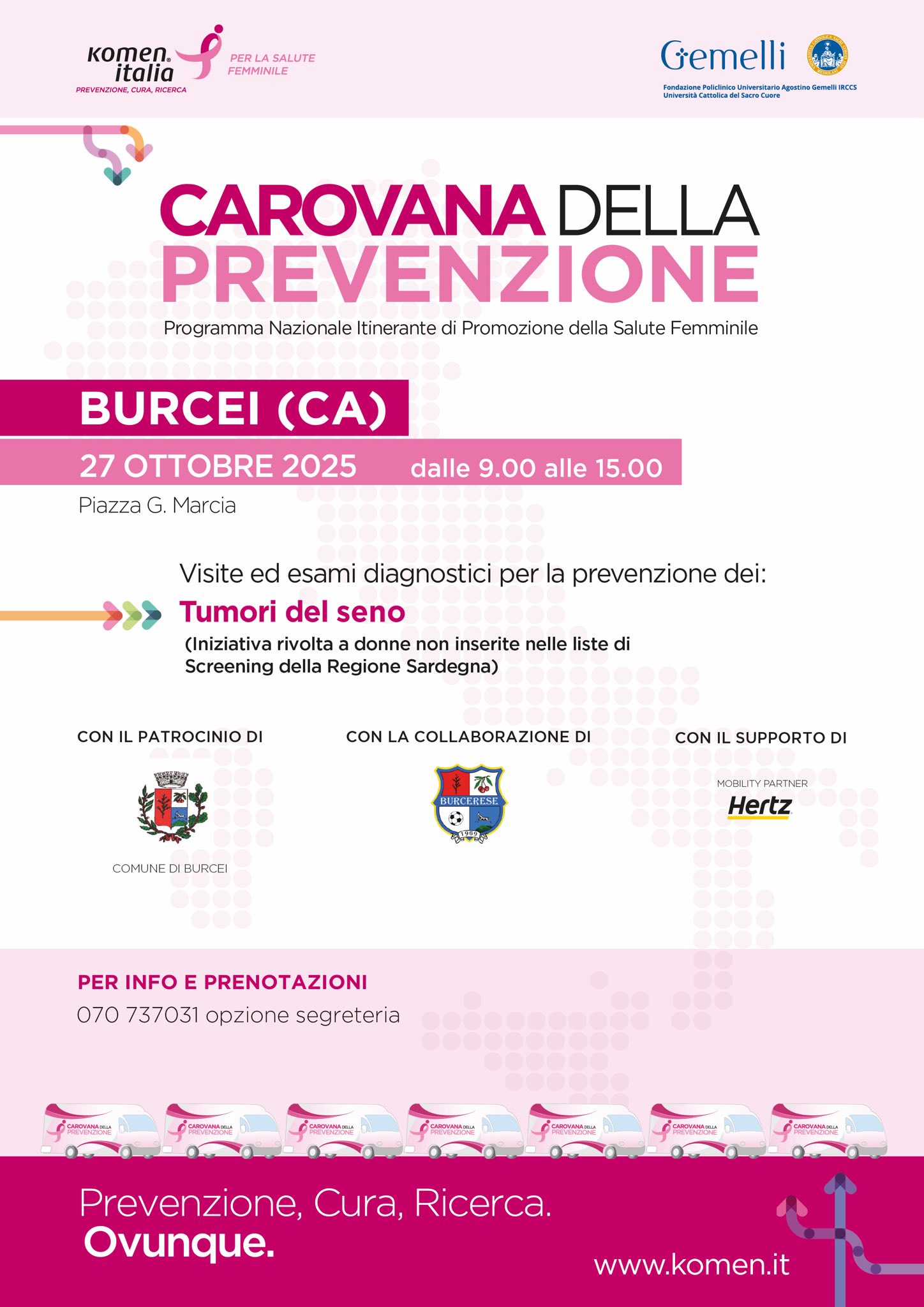 Il 26 e il 27 di Ottobre Burcei si tingerà di rosa insieme a Komen Italia in Sardegna con due importanti attività di prevenzione e sensibilizzazione sull salute femminile!